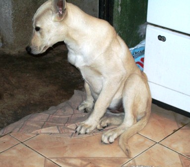 Esta perrita la atropellaron, estuvo 3 semanas en la veterinaria yo la tengo en mi casa; en la segunda foto ya camina ya tiene como 1 mes conmigo; de su patita ya está mejor pero tengo que buscarle casa tiene 6 meses y está esterilizada.