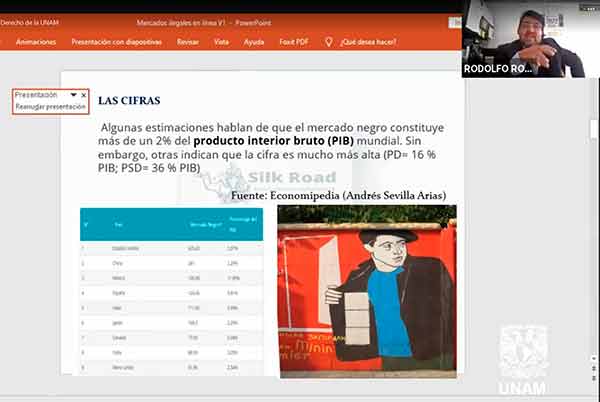 El también académico de esta Facultad, Rodolfo Romero Flores, coincidió en que hay estimaciones de que los mercados negros, en los que se intercambian bienes y servicios cuya producción y/o distribución es ilegal -como las drogas, armas, pornografía infantil y medicamentos controlados, entre otros-, representan dos por ciento del Producto Interno Bruto (PIB) mundial.