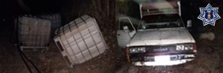 Se trata de dos automóviles marca Nissan y dos camionetas, una marca Ford y otra Nissan, así como cuatro contenedores abastecidos con alrededor de cuatro mil litros de líquido presumiblemente hidrocarburo.