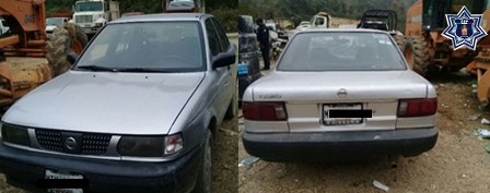 En la región de la Cañada, personal de seguridad del Sector de San Juan Bautista Cuicatlán, en coordinación con el Ejercito Mexicano, aseguraron en el camino de terracería que conduce de Huautla de Jiménez a la localidad de Loma Nopal, un vehículo tipo Tsuru, color gris, con placas de circulación MTV-1484, de México, el cual al ser verificado en el Registro Público Vehicular (Repuve), arrojó reporte de robo.