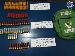 Asimismo, en la camioneta se localizaron dos bolsas de nylon color negro, una de las cuales contenía siete cajas de cartuchos calibre 22, con mil 250 cartuchos y en la otra bolsa hallaron dos cajas de cartuchos calibre 16 mm, con 100 cartuchos, que en total sumaron mil 350.