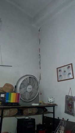 La dependencia informó que la vivienda sufrió daños estructurales que requieren una revisión a profundidad, ante ello la familia de la señora Martha GS y José AC fue exhortada a evacuar el inmueble y en caso de no tener donde refugiarse, se les ofrecieron las instalaciones de la CEPCO para su atención.