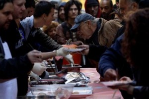 Los organizadores informaron que durante la jornada ofrecieron más de tres mil platos de comida de manera gratuita en el Parque Zuccotti, bautizado como la plaza de La Libertad, donde instalaron carpas y su base de operaciones hace más de dos meses.