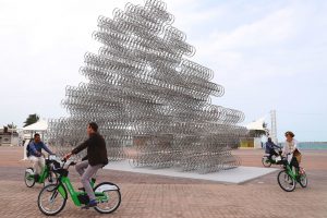 Una escultura pública hecha con 720 bicicletas recuerda en los Emiratos Árabes Unidos nos recuerda que este ecológico medio transporte es idea para la ciudad.