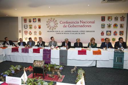 Ciudad de México.- La Conferencia Nacional de Gobernadores (Conago) –integrada por los 32 mandatarios estatales- sostuvo un encuentro con Andrés Manuel López Obrador, virtual presidente electo de México, a fin de acordar acciones conjuntas en beneficio del desarrollo de toda la República.