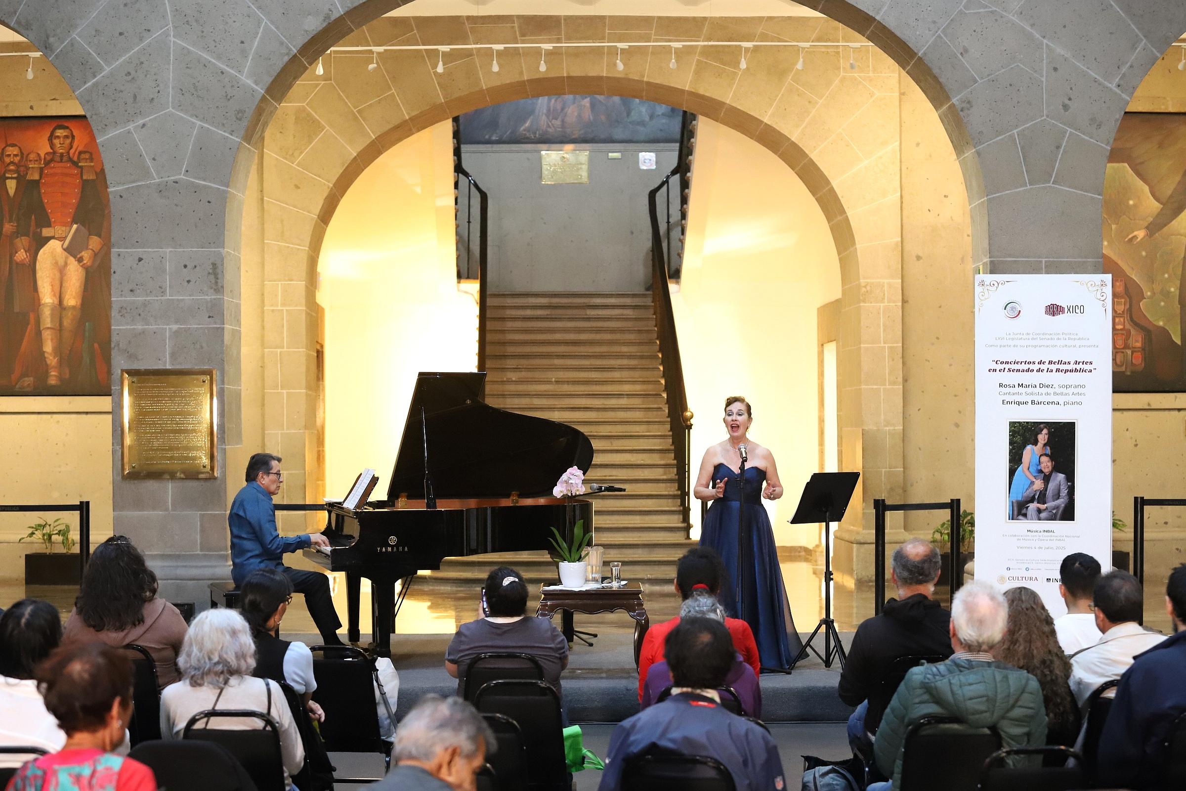 Como parte del programa de los Conciertos de Bellas Artes en el Senado de la República, la voz de Rosa María -clara, poderosa y profundamente emotiva-, llenó cada rincón del lugar, lo que cautivó a una cada vez más numerosa audiencia que respondió con entusiasmo, respeto y largos aplausos al final de la presentación.