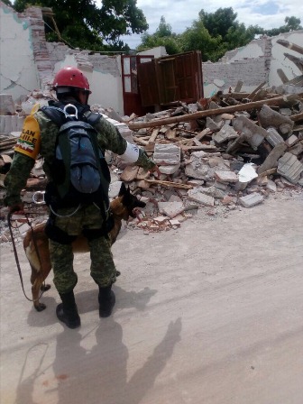 Por otra parte, 10 binomios canófilos continúan realizando actividades de búsqueda y rescate, localizando hasta la fecha el cuerpo sin vida de un policía municipal bajo los escombros del Palacio Municipal de Juchitán, Oaxaca.