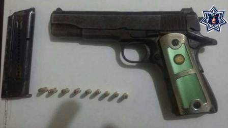 De este modo fue localizada bajo del asiento del copiloto, un arma de fuego tipo escuadra, calibre 22, abastecida con nueve cartuchos útiles y su respectivo cargador. Esto, sin que la persona que se identificó como Higinio LP, de 28 años de edad, presentara la licencia de portación, motivo por el que fue consignado ante la Agencia del Ministerio Público Federal.
