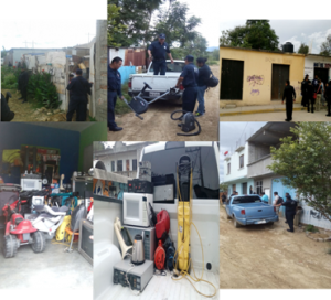 Oaxaca, Oax., 30-ago-2015.- Elementos de la Agencia Estatal de Investigaciones (AEI) y ministerios Públicos de la Subprocuraduría Zona Norte ejecutaron este sábado cuatro órdenes judiciales de cateo en igual número de domicilios del municipio de San Antonio de la Cal donde decomisaron diversos electrodomésticos y herramientas.