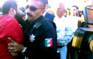 Ciudad Juarez. -Chih.-Hoy a las seis de la tarde efectivos de la Policía Municipal de Juárez y de la Dirección de Vialidad, dirigidos por el Secretario de Seguridad Pública, teniente coronel Julián Leyzaola reprimieron a golpes una manifestación de jóvenes del Frente Plural Ciudadano que conmemoraba a los caídos en esta “guerra” contra el crimen organizado y protestaba contra la estrategia gubernamental para llevarla a cabo. También fueron golpeados y despojados de sus cámaras e instrumentos varios periodistas y reporteros gráficos.