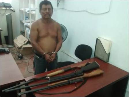 Tras realizar una minuciosa búsqueda en la recamara y en el cuarto habilitado como tienda, así como en una construcción ocupada como cocina, uno de los elementos encontró recargado en la pared un rifle calibre 22 sin marca legible, abastecido con un cartucho útil, posteriormente cerca de un ropero, fue ubicada una escopeta calibre 16, abastecida con un cartucho del mismo calibre, mientras que en la cocina se localizó una escopeta Steven calibre 20.
