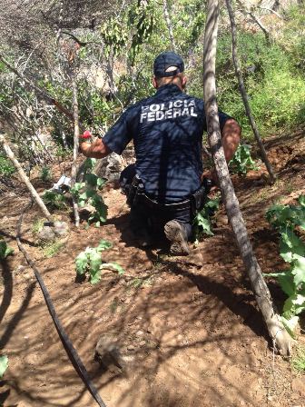 Ciudad de México., 22-mar-2016.- Derivado de alertas y seguimiento a denuncias ciudadanas, la Policía Federal erradicó y destruyó tres plantíos de aparente amapola y cuatro plantíos de presunta marihuana en el municipio de Ensenada, Baja California, los cuales suman poco más de mil 500 metros cuadrados de extensión, informó la Comisión Nacional de Seguridad (CNS).
