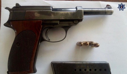 A dichas personas se les localizó un arma de fuego tipo escuadra, leyenda ilegible, matrícula 6248 y un cargador metálico abastecido con cuatro cartuchos útiles calibre 9 mm; dentro de una cangurera.