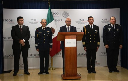 A nombre de los integrantes del Gabinete de Seguridad del Gobierno de la República: Sedena y Sectetaría de Marina (Semar)-Armada de México, así como de la Procuraduría General de la República (PGR) y la Policía Federal (PF), indicó que el ahora detenido es ubicado como el presunto responsable de diversos enfrentamientos y la violencia generada en esa entidad.