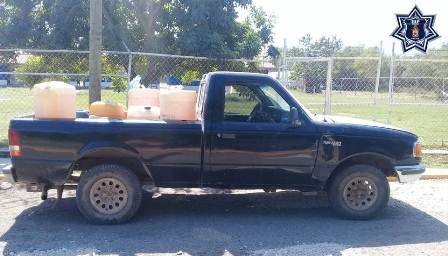 Alrededor de las 09:00 horas de este viernes, los agentes fueron alertados por una persona del sexo masculino sobre la presencia de una camioneta cargada con bidones presuntamente abastecidos de hidrocarburo, mismo automotor que se circulaba con dirección a un camino de terracería que conduce a una subestación de Petróleos Mexicanos (PEMEX).
