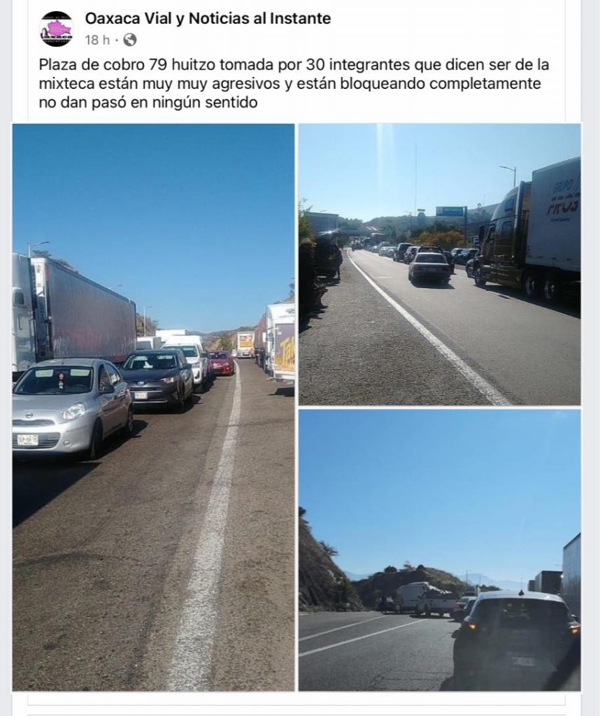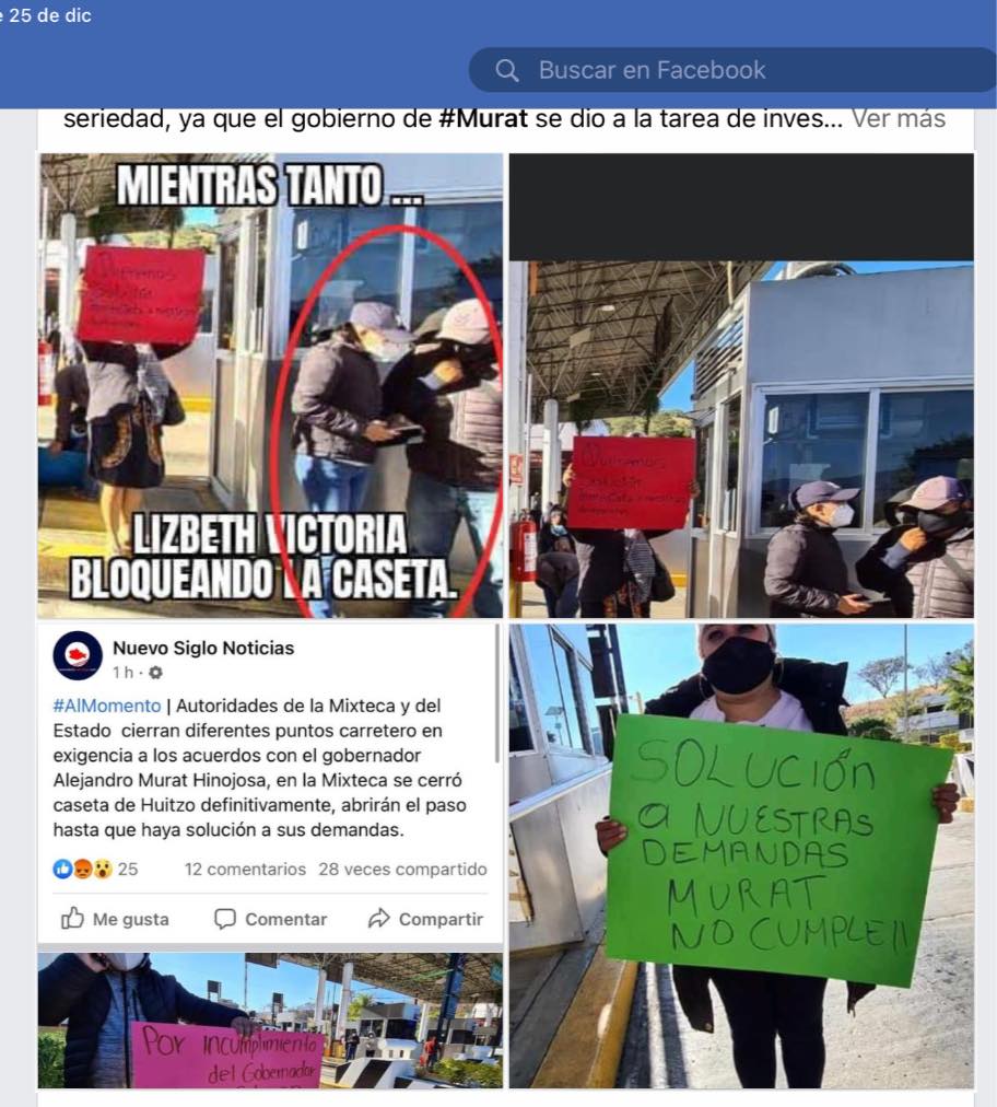 Como no se los dieron cuando los pidieron, el 24 de diciembre día de la Noche Buena, Lizbeth bloqueó la caseta de la autopista en Huitzo, a pesar de ser una autoridad municipal, atentó contra el libre tránsito, contra el derecho a la movilidad, contraviniendo al presidente Andrés Manuel López Obrador, que el 16 de noviembre de 2020 , calificó la toma de casetas como robo al pueblo, acción que comparó con el robo de combustible y les advirtió que ello es un delito.