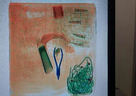 Personal de la corporación efectuó una segunda inspección en la máquina de rayos X, la cual mostró tonalidades de diferentes colores y formas densas a manera de comprimidos.