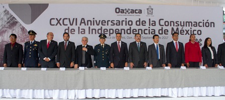 Oaxaca de Juárez, Oaxaca.- Al encabezar la ceremonia cívica del 196 Aniversario de la Consumación de la Independencia de México, el gobernador Alejandro Murat Hinojosa destacó que en medio del dolor, hoy México y Oaxaca son grandes por su gente, grandeza que debe seguir siendo el motor en esta etapa de reconstrucción para consolidar lo mejor que tenemos como nación.