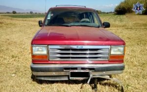 De acuerdo al informe, elementos de la Policía Estatal reportaron el aseguramiento de la camioneta Ford Explorer, color vino, del Estado de México y número de serie 1FMDU32X1MUD58879 que reflejó reporte de robo vigente al verificar su estatus en el Sistema Plataforma México.