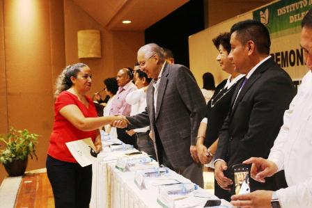 Oaxaca de Juárez, Oaxaca.- La Delegación Oaxaca del Instituto Mexicano del Seguro Social (IMSS) entregó reconocimientos a 87 trabajadores por 25; seis por 30 y tres por 35 años de servicio, quienes han dejado toda una vida dentro de la institución de salud y en beneficio de sus derechohabientes, durante una ceremonia efectuada en conocido centro social.