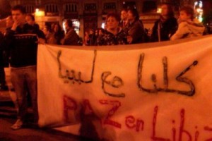 Bajo la consigna “contra la guerra en Libia, por la paz y por la soberanía de los pueblos”, cientos de españoles se dieron cita en la plaza de La Puerta del Sol, en el centro de Madrid, para rechazar el apoyo a las acciones militares contra Libia.