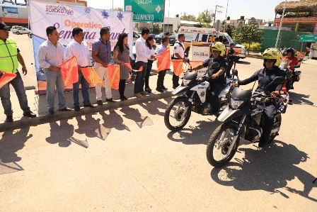 Santa Cruz Xoxocotlán, Oaxaca.- A fin de garantizar la integridad de propios y visitantes en Santa Cruz Xoxocotlán, el edil Alejandro López Jarquín dio el banderazo de inicio al Operativo de Semana Santa Segura 2018, donde participarán más de 230 elementos de la Comisaría de Seguridad y Vialidad Pública, Policía Federal, además de personal de protección civil y rescatistas.