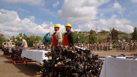 Durante la “Ceremonia de destrucción de armamento”, las comandancias de la II Región Militar (Mexicali, Baja California) y de la III Región Militar (Mazatlán, Sinaloa), informaron que participaron autoridades de los tres órdenes de gobierno en los actos realizados en las explanadas del 6/o. Batallón de Fuerzas Especiales (Nogales, Sonora) y del 94/o. Batallón de Infantería (Culiacán, Sinaloa).