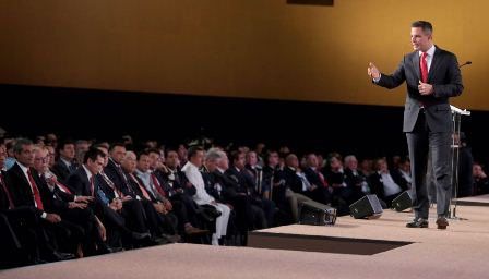 Después del acto protocolario, Murat Hinojosa ofreció un mensaje al pueblo de Oaxaca en el Centro Cultural y de Convenciones (CCCO), donde presentó un balance sobre los trabajos e iniciativas realizadas en su primer año de gestión, que se han regido conforme a los cinco ejes rectores del Plan Estatal de Desarrollo (PED) 2016-2022.