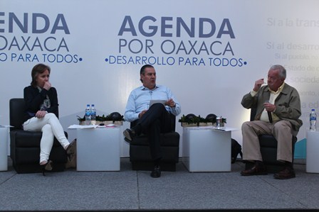 Durante el segundo Foro “Desarrollo para todos”, lanzó al primer panel las siguientes preguntas: ¿Qué condiciones se necesitan para generar crecimiento económico?, ¿qué sectores se ven como áreas de oportunidad? y ¿a qué se pueden comprometer las empresas para que impulsen el desarrollo del Estado de Oaxaca?.