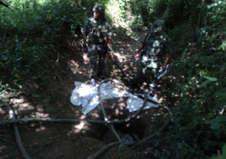 La dependencia señala que el hallazgo se realizó durante un reconocimiento terrestre en el marco de la Estrategia Integral del Estado Mexicano en contra del Narcotráfico y la Delincuencia Organizada.