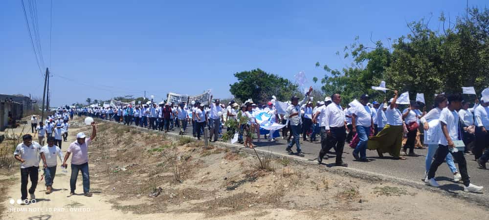 La marcha, que recorrió el tramo desde la agencia de la colonia Juárez hasta la cabecera de San Mateo del Mar, contó con la asistencia de alrededor de 1,000 comuneros y comuneras vestidos de blanco, integrantes de las 16 agencias municipales, barrios y secciones. exigiendo el apoyo de todas las instancias del gobierno federal y estatal, y de los poderes legislativo y judicial, asi como de la Comisión Nacional para los Derechos Humanos (CNDH) para lograr el restablecimiento de la paz con justicia y dignidad, la reconciliación interna y la reconstrucción del tejido social.