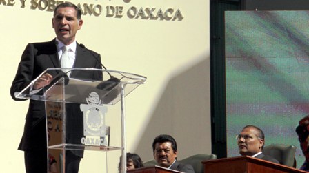Durante su primer discurso como Gobernador Constitucional, Cué sostuvo que la transición es el comienzo de una lucha que sólo tendrá éxito si se involucran todos los sectores sociales.