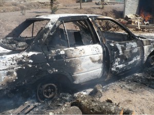Ante el avance de la fuerza policial los agresores procedieron a esconder sus armas, y se trasladaron a la entrada de la comunidad con los rostros cubiertos, en donde se encontraban los pobladores y los incitaron a impedir el acceso de los cuerpos de seguridad, trasladando una patrulla a la que le prendieron fuego sobre el camino.