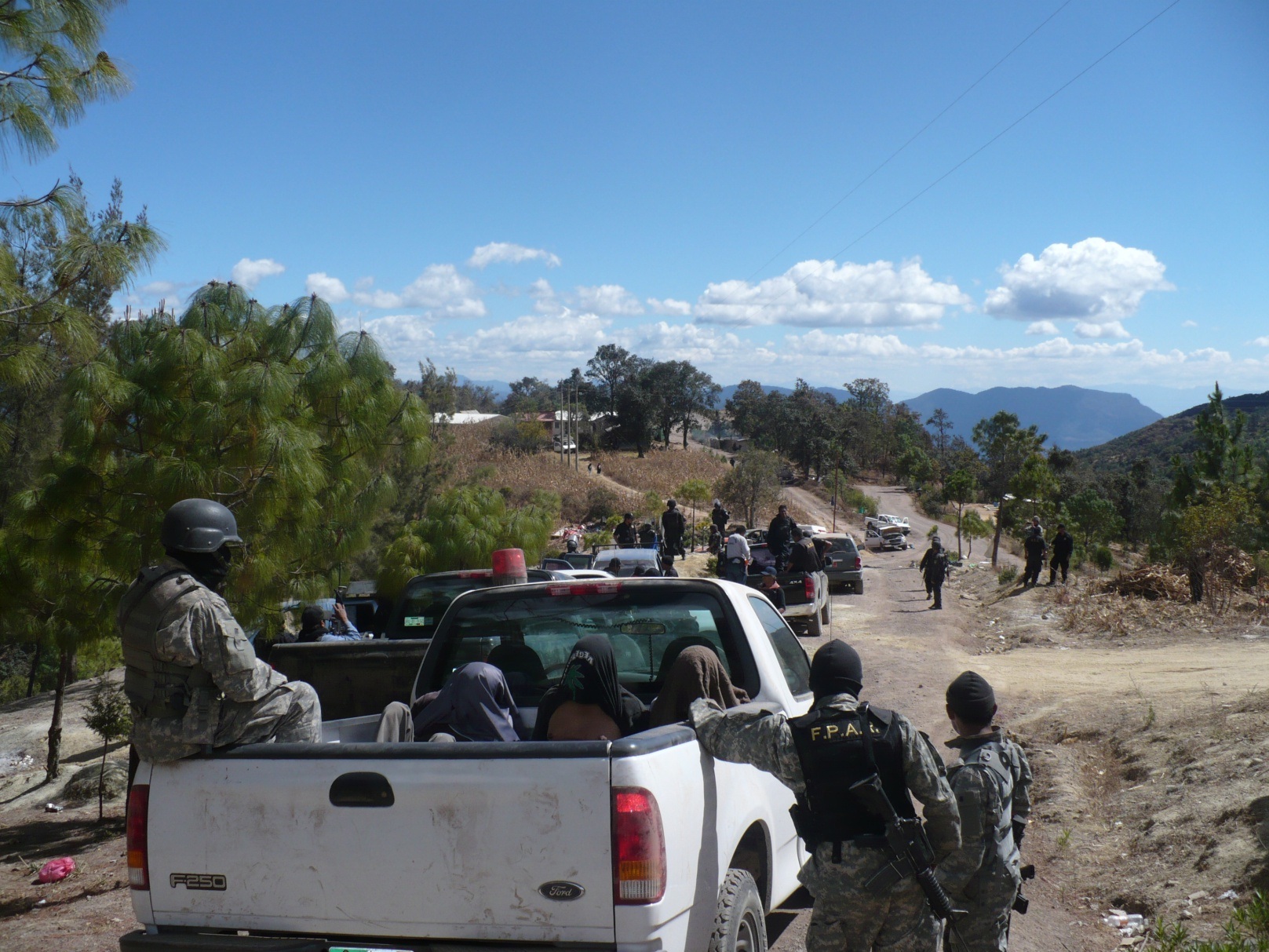 Al llegar a una segunda barrera de troncos, fueron recibidos con disparos de arma de fuego, que provenían de un grupo de pobladores ubicados en la entrada del lugar denominado “Tierra Blanca”. A pesar la agresión y no obstante de ser un blanco fácil de los tiradores, los elementos retiraron los troncos y cubrieron la zanja, a fin de continuar a bordo de sus unidades.