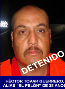 En flagrancia del delito fue detenido Héctor Tovar Guerrero, alias “El Pelón”, identificado como conductor del vehículo marca Internacional, color azul, con placas de circulación 135DP08, del Servicio Público Federal, antes mencionado, quien se encontraba en posesión de dos equipos de telefonía móvil.