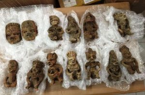 Al realizar una inspección en su interior fueron halladas 13 figuras de 18 centímetros de altura por 9 centímetros de ancho, envueltas en plástico transparente.