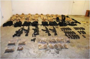 México.- Elementos de la Policía Federal implementaron un operativo simultáneo en once viviendas ubicadas en el Distrito Federal y el oriente del Estado de México, en los que se tuvo como resultado el aseguramiento de 17 armas de fuego y más de 32 mil cartuchos, además de ocho personas detenidas.