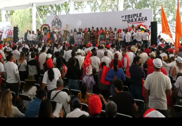 En su intervención el candidato a la gubernatura Triple agradeció al primer priista de la entidad Alejandro Murat, como se le llama al gobernador en turno, por lo que el respetable rompió en aplausos y sin explicación para los no iniciados en la política, empezó a imponerse el grito de presidente, presidente, presidente, por las aspiraciones que tiene de ser candidato de su partido del PRI a la presidencia de la República, para la contienda del 2024.