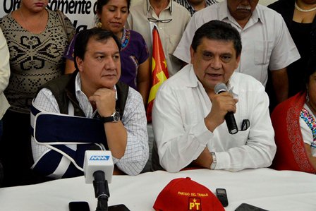 Oaxaca, Oax., 08-mar-2016.- El comisionado nacional electoral del Partido del Trabajo (PT), Óscar González Yáñez, informó que la determinación de este instituto político es en primer término la confirmación de la candidatura a gobernador de Oaxaca de Benjamín Robles Montoya y en segundo lugar, la ratificación del diputado Rafael Armando Arellanes Caballero como comisionado político nacional del PT en el estado.
