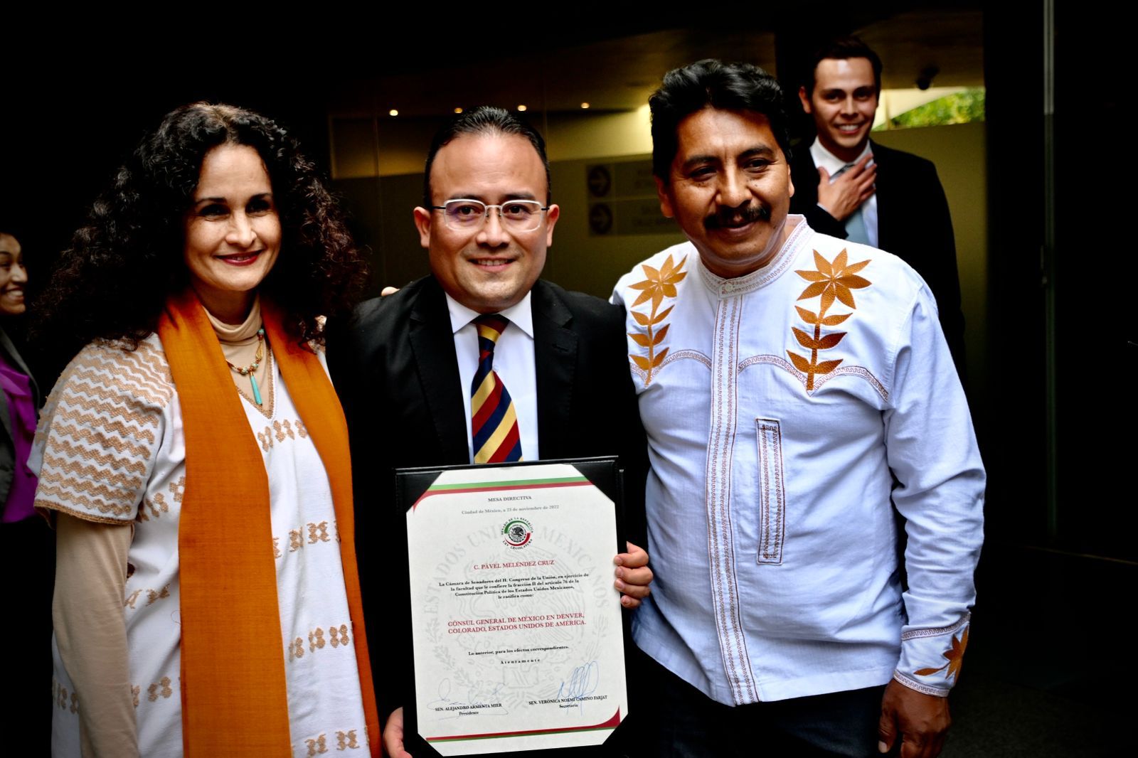 El Presidente Andrés Manuel López Obrador, designó en septiembre pasado a Pável Meléndez Cruz, ex diputado oaxaqueño, como Cónsul General de México en Denver Colorado, Estados Unidos, con la aprobación el dictamen confirma la incorporación del político oaxaqueño al equipo del Canciller Marcelo Ebrard en Estados Unidos.