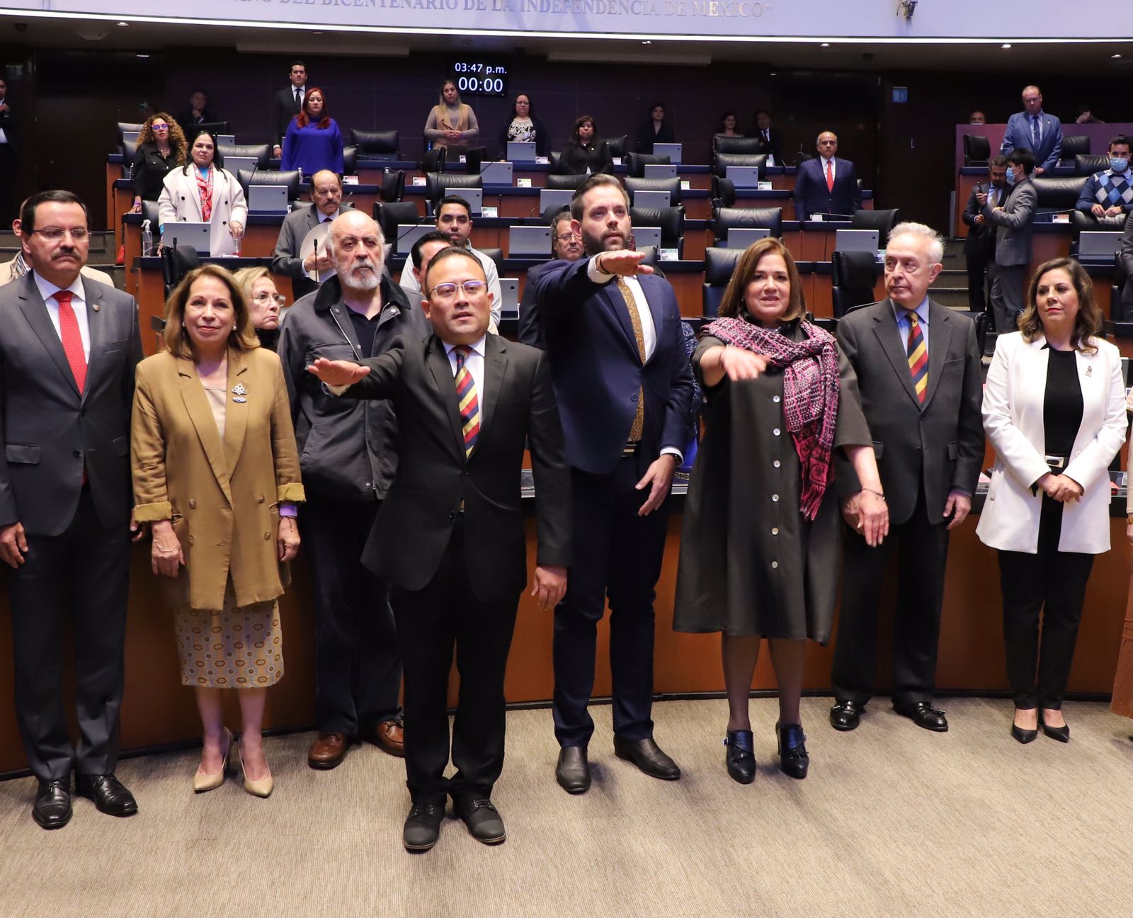 Luego de la votación de los tres dictámenes correspondientes, el presidente de la Mesa Directiva en funciones, senador Eruviel Ávila Villegas, tomó protesta a Pável Meléndez Cruz, Martha Patricia y Mauricio Vizcaíno Crespo, a quienes les deseo éxito en sus nuevas responsabilidades.