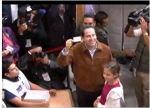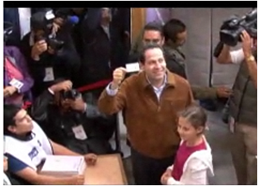 Por su parte el candidato al gobierno del Edomex Coalición Unidos por Ti, de la alianza PRI – PVEM-PANAL, Eruviel Ávila Villegas, emitió su sufragio en la calle Moctezuma esquina Boulevard Teocallis en la colonia Ciudad Azteca de Ecatepec.